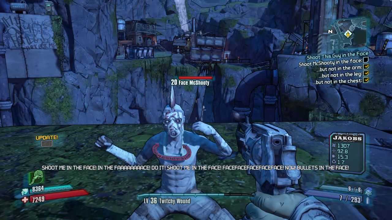 Ещё одна игра в мире после апокалипсиса, Borderlands, представляет собой лут-шутер с развитием персонажа в лучших традициях игр жанра ARPG. Уровень врагов растёт по мере прохождения сюжета. Игрок должен поспевать за ними, иначе очередная битва пройдёт не в его пользу. У каждого оружия есть свой набор характеристик, найти хорошее сочетание не так просто. Но не стоит забывать, что практически отовсюду сыплются патроны и оружие. В игре есть неплохая сюжетная линия с большим количеством юмора.