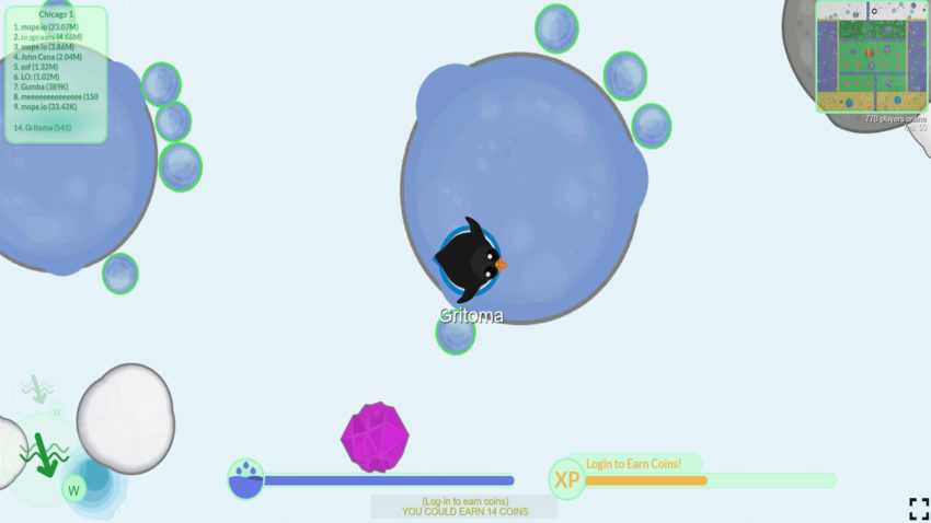 Mopeio — это игра, очень похожая на Agario, так что обе они представляют собой массовые многопользовательские экшн-игры на тему роста. Игроки управляют одним существом на игровом поле, стремясь стать больше, поедая продукты питания в игровом мире или, если они выросли достаточно большими, других игроков.