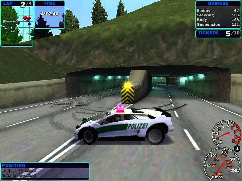 Обдавая полицейских облаком дыма из-под колес в режиме Hot Pursuit, чувствуешь себя тем самым Ковальски из фильма. Полиция что-то бубнит по радио, а вы отчаянно швыряете машину направо в надежде вмазать преследователя в дерево. Скорости за гранью возможного, но машина чувствуется великолепно. Мужественный Jaguar XK8, цепкий Corvette и безумная Diablo — за скудный список автомобилей игра с лихвой отыгралась реализацией. До сих пор помню, как «Ягуар» буквально «глотал» повороты, а Ferrari 550 Maranello ехала настолько плавно, что казалось, будто двигатель работает на шоколаде. Hot Pursuit — пожалуй, первая гонка в истории, где по баранке, каким ты придешь к финишу, потому что удовольствие от вождения начисто перекрывает все игровые призы.