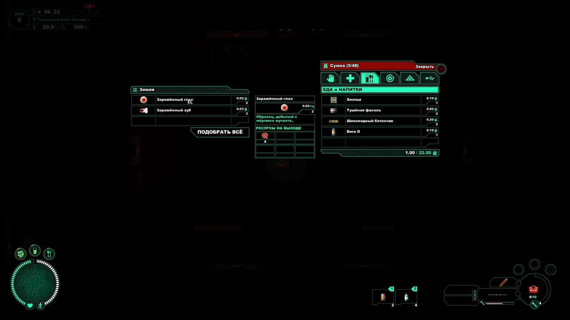 Пожалуй, было бы странно, если бы обзор Subterrain, игры в жанре survival напоминаю, я бы забыл написать, собственно, про выживание. Впрочем, я все-таки не забыл. Итак, что же представляет собой выживание в Subterrain? Если вы когда-нибудь воображали, что вы человек, которому надо кушать, ходить в туалет, спать и т.д., то вы уже примерно готовы к тому, что вас ждет. В Subterrain вам нужно делать все из того, что я перечислил выше. Впрочем, есть и пить приходится не так уж и часто. Такая же история с туалетом и сном. На мой взгляд, это очень здорово, потому что из симулятора выживание на Марсе игра могла бы резко превратиться в “Пойду отпинаю пару мутантов, пока не приспичит в туалет”. Едва ли такая игра имела бы успех у кого-либо. Еды и воды вы найдете в игре в достатке. К тому же, вы можете производить пищу сами, но об этом будет чуть ниже.