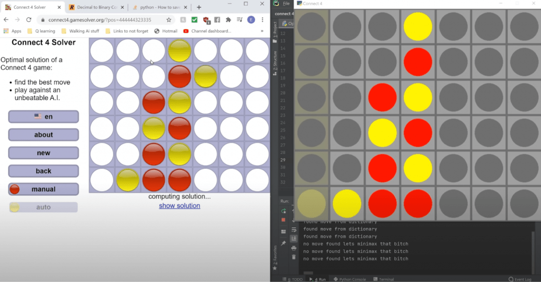Чтобы сгенерировать себе такую таблицу, Эван идёт на хитрость: он заходит на сайт Паскаля, где можно сыграть против его алгоритма. После этого Эван перепрограммирует свой код так, чтобы он играл против алгоритма Паскаля и записывал в табличку каждый его ход: