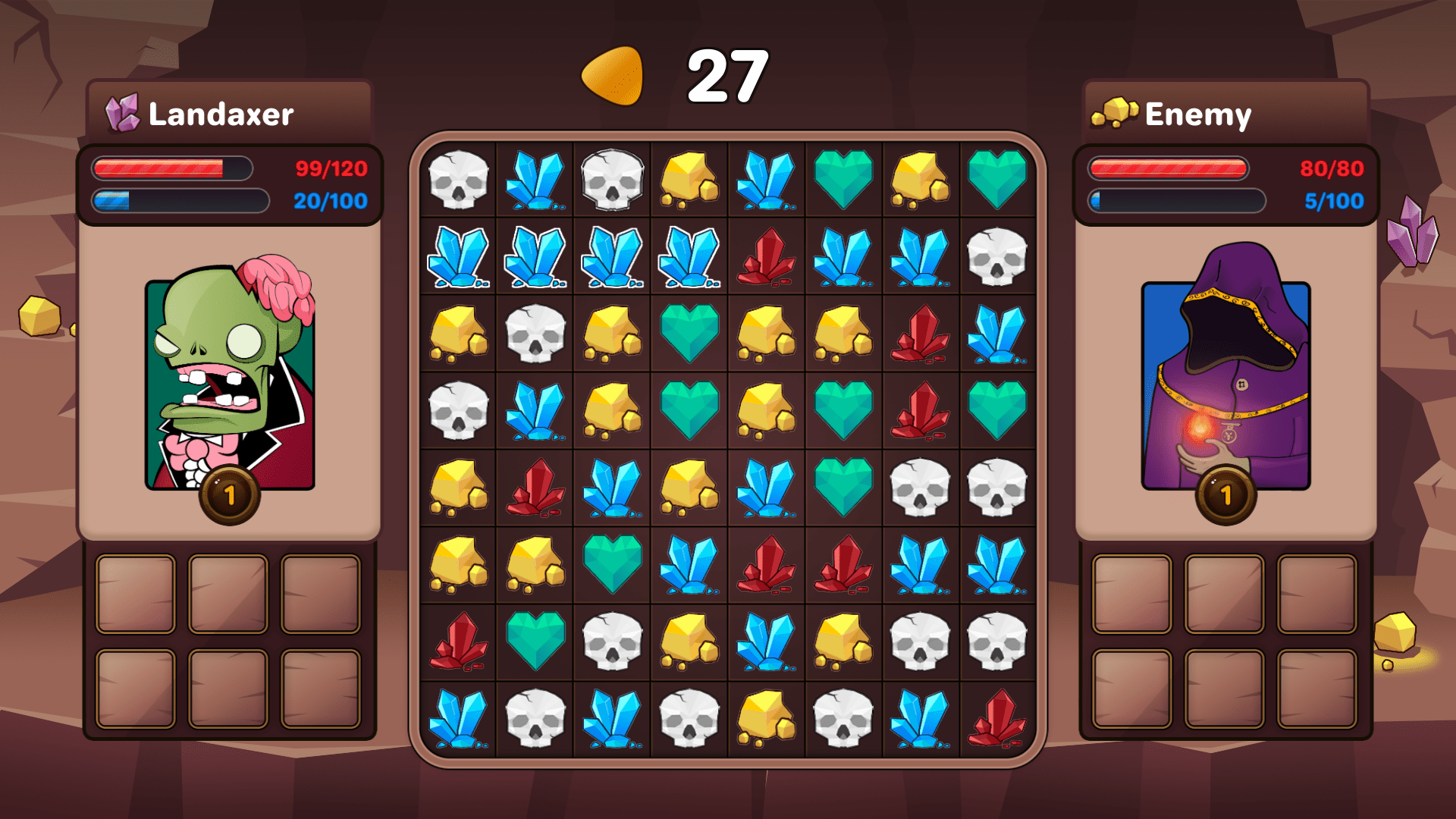 Как я уже говорил пример написания алгоритма буден представлен на примере игры DarkCaves. Поэтому хотелось бы объяснить, как устроена логика в данной игре. У каждого игрока есть 30 секунд для того, чтобы совершить ход, т.е. переместить фишки местами.