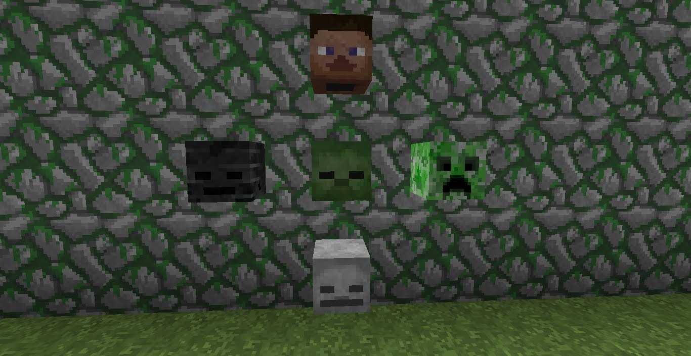 Головы зомби, крипера и обычного скелета получить в режиме «Выживание» практически невозможно без читов. Они выпадают из соответствующих мобов, если их убьёт заряженный крипер. Обычный крипер становится заряженным и получает синюю ауру, если в него или рядом с ним на расстоянии четырёх блоков ударит молния.