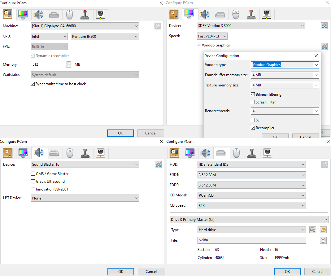 Выберите конфигурацию виртуального компьютера в PCem — в сети есть разные варианты под мощность разного железа. Учтите, что если поставите, например, процессор сильнее Pentium II/300, в ресурсоемких играх будет сильно падать производительность. Все из-за того, что эмулятор нагружает прежде всего процессор, но использует там только одно ядро.