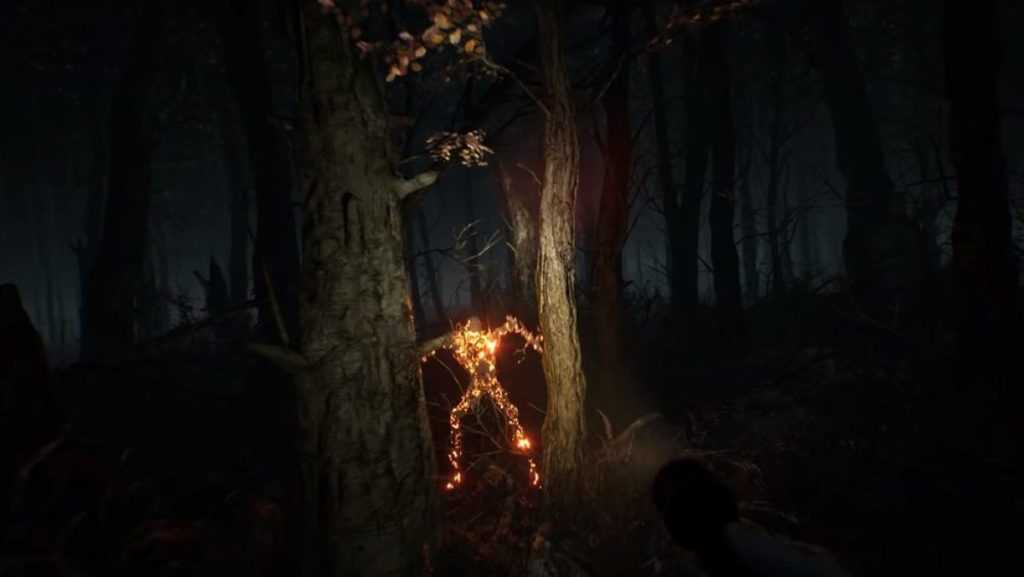 Выйдите из бункера и пройдите налево, а затем снова налево, поскольку путь справа ведет к автомобилю, который вы посетили ранее. Буллет пойдет по следу. Бегите за ним, пока он не начнет лаять на дерево впереди. Не забывайте поглаживать собаку время от времени. Подойдите к дереву и вы увидите странное существо. Включите свет, чтобы чудовище сбежало. Следите за поведением Буллета. Он будет лаять со стороны, где прячется монстр. Несколько раз прогоните монстра и продолжайте движение. Чуть позже вам придется снова прогнать монстра. За это вы получите достижение «Зло в лесу».