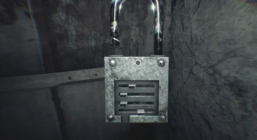 Теперь вы можете вернуться в бункер и использовать код на замке. Каждая из четырех позиций имеет небольшой рычаг, который вы можете двигать. Перемещаем первый рычаг во второй слот. Оставляем второй рычаг в первом слоте. Оставлям третий рычаг в первом слоте. Перемещаем четвертый рычаг в третий слот. После этого мы сможем зайти в бункер.