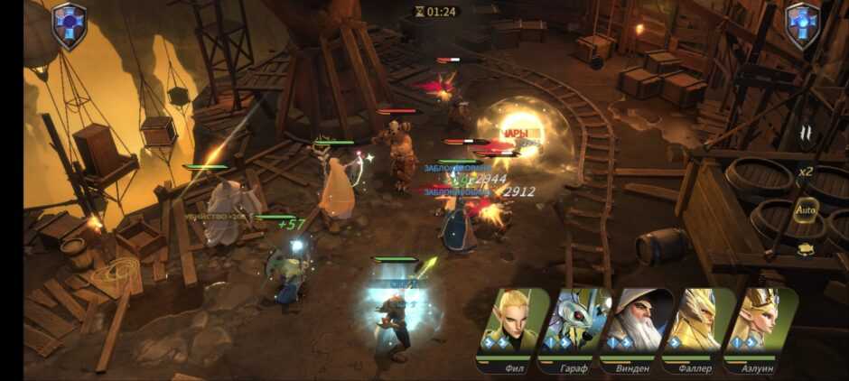 Основные удары справа внизу — автоатака и несколько навыков, которые можно увеличивать в уровне в процессе раунда. У каждого героя своя подборка навыков, так что надо осваивать и изучать, прикидывать, где что стоит использовать. а где лучше скипнуть, не используя даже ульту, то есть самый мощный навык.