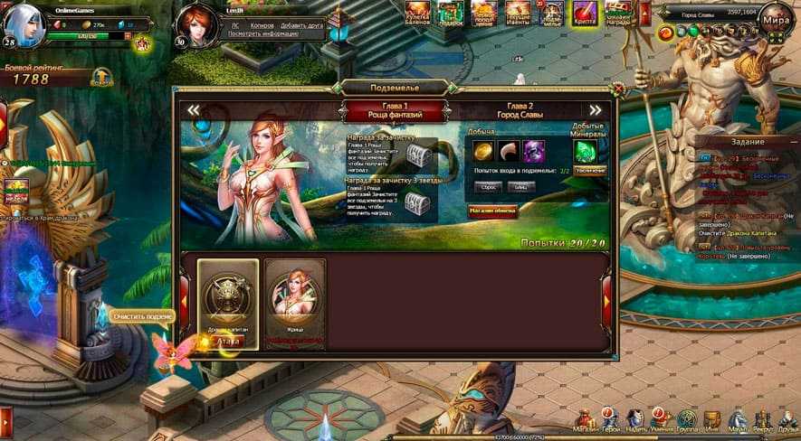 - Достигнув 15-го уровня, вы сможете получить доступ к собственному городу, в котором можно заниматься рыбалкой, чтобы заработать немного серебра, получить очки мудрости, которые вам будут нужны для прокачки, осыпая розами статую богини, получить благословение феи и ряд других полезных функций.