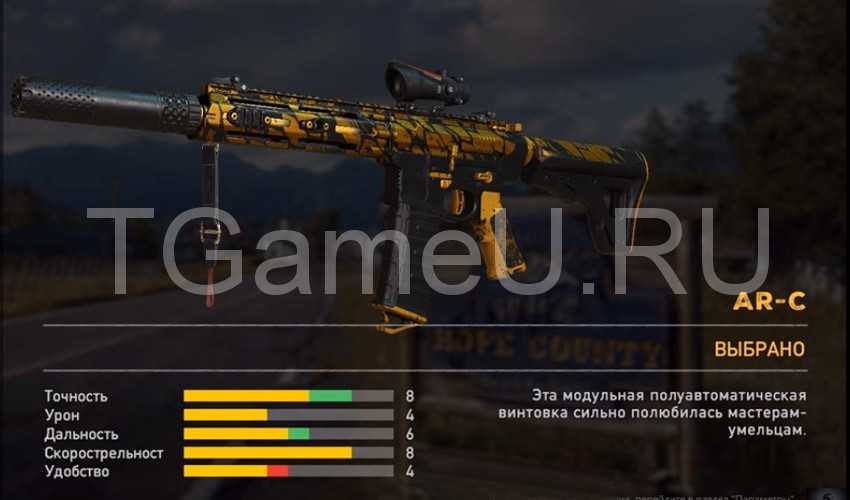 Полуавтоматическая винтовка MS16 используется в играх с первых дней игры Far cry 3 и идеально подходит для тактики «ударил и убегал» или против снайперов . Это одно из лучших видов оружия Far Cry 5, так как им очень приятно пользоваться из-за его скорострельности . Опытные игроки обнаружат, что быстро опустошают боеприпасы при использовании этой винтовки. Кроме того, вы можете прикрепить к MS16 множество различных вещей, таких как расширенный магазин или глушители звука.
