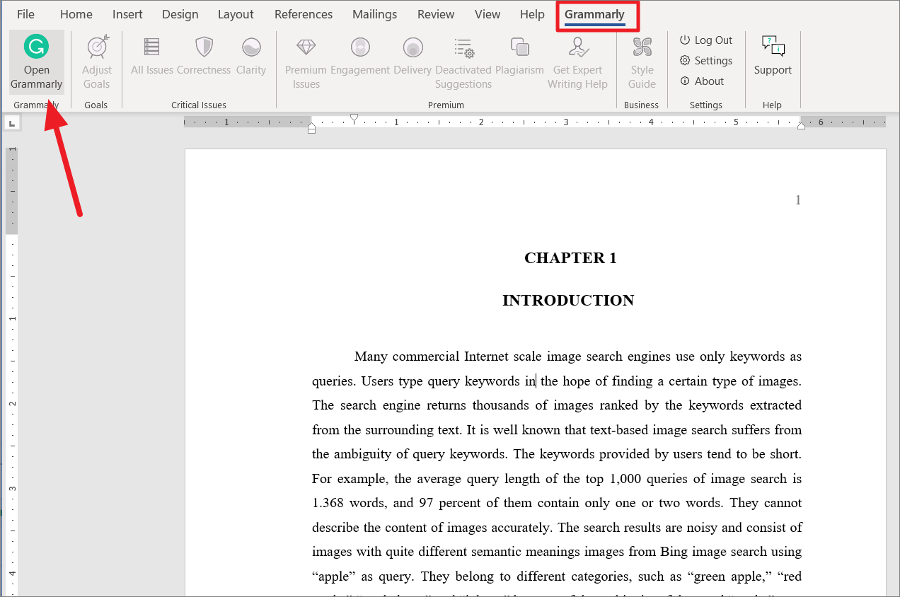 Теперь вы можете открыть любой документ, перейти на вкладку «Grammarly» и нажать «Открыть Grammarly».