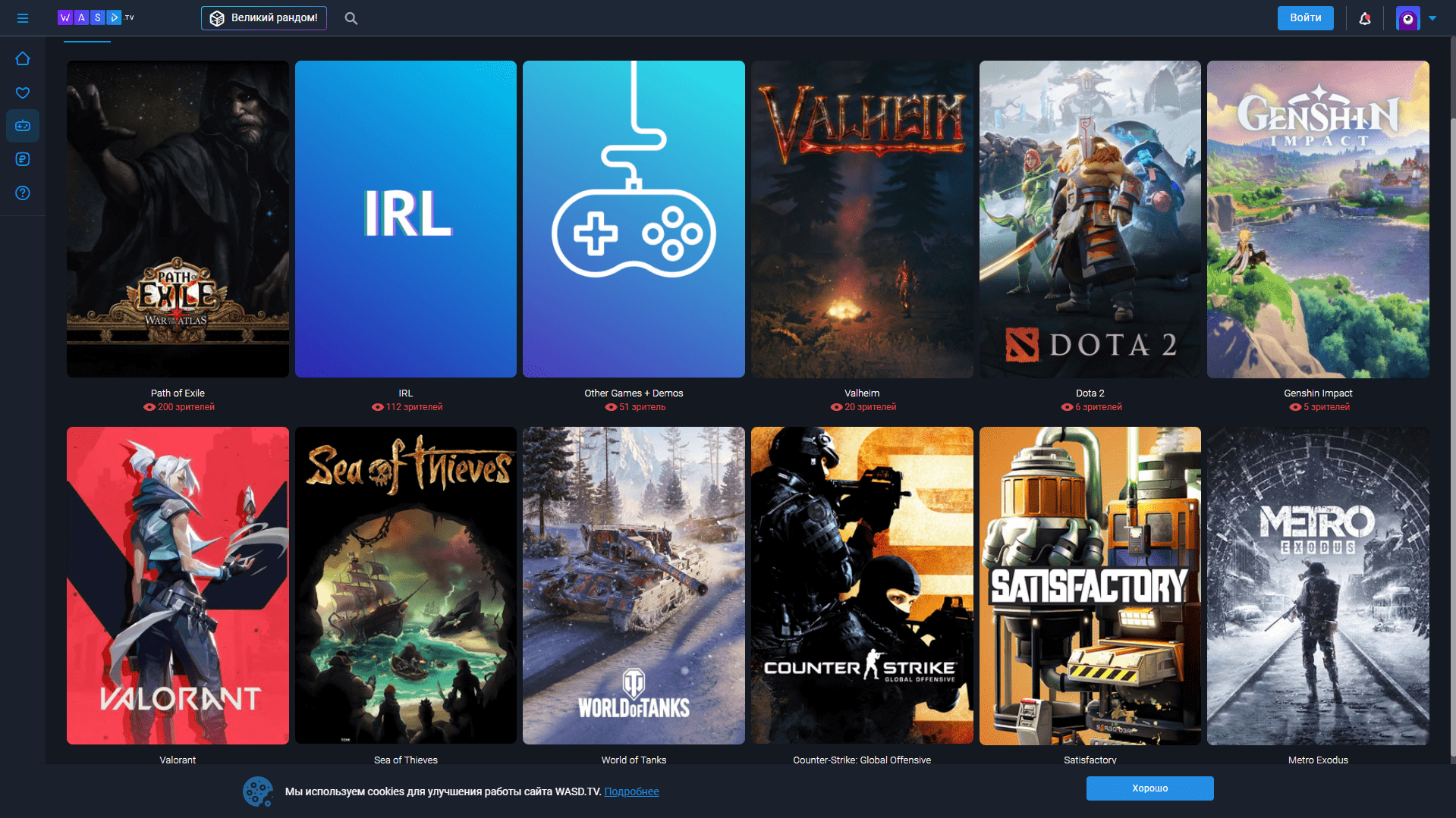 Отечественная площадка WASD.TV была создана компанией МТС в 2019 году. Основное назначение платформы заключается в проведении стримов любой тематики. Процесс регистрации доступен бесплатно. В целом, интерфейс и использование будет привычно стримерам. Новичкам также будет легко разобраться в использовании сайта. К числу основных возможностей платформы можно отнести следующие: