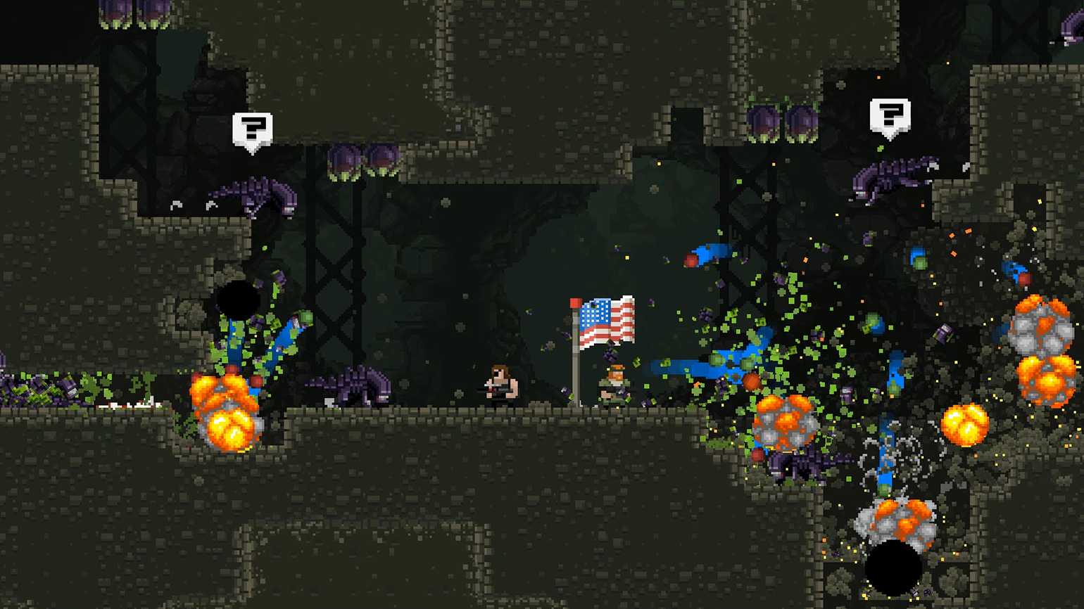 На протяжении всей игры Бро отважно сражаются с полчищами врагов, среди которых затесался сам Сатана, разносят архитектуру уровней на пиксельные кусочки, и вызволяют из плена товарищей. Игра полностью оправдывает своё название: в одиночку проходить её не так весело, как в компании, учитывая, что локальный кооператив поддерживает до четырёх игроков как на консолях, так и на ПК