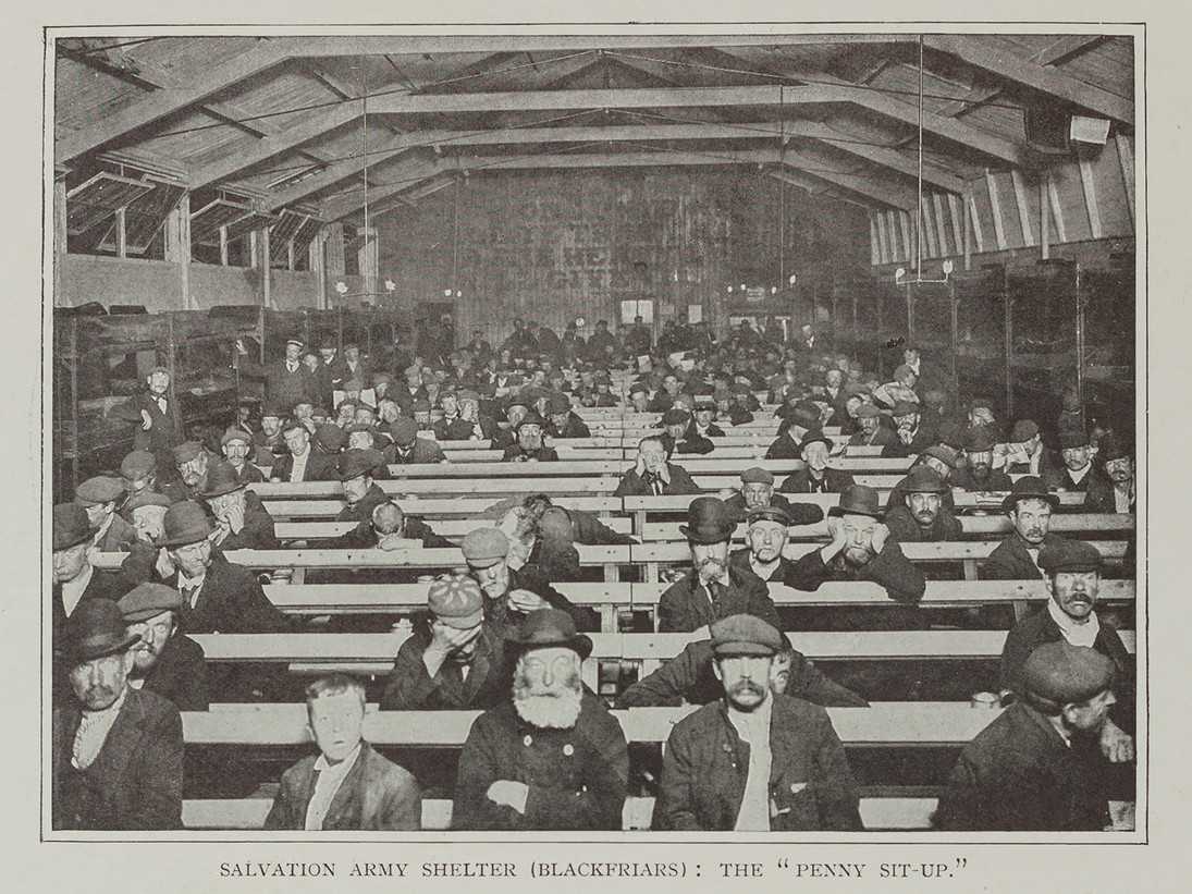 Предполагалось, что бедняки платят лишь за возможность провести ночь в сухости и в сидячем положении — в противном случае им пришлось бы мокнуть под дождём на уличной брусчатке. Еду в таких домах не давали: постояльцы обходились теми жалкими крохами, которые приносили с собой. Как правило, содержатели этих дешевых приютов не тратились даже на отопление, поэтому температура в помещении было не сильно выше, чем снаружи. Переночевать сюда приходили не только мужчины, бывало, что женщины и дети покупали себе место на скамье. Один пенни на сегодняшний день равняется примерно четверти фунта стерлинга (около 25 рублей), а потому наскрести на такой своеобразный ночлег могли практически все.