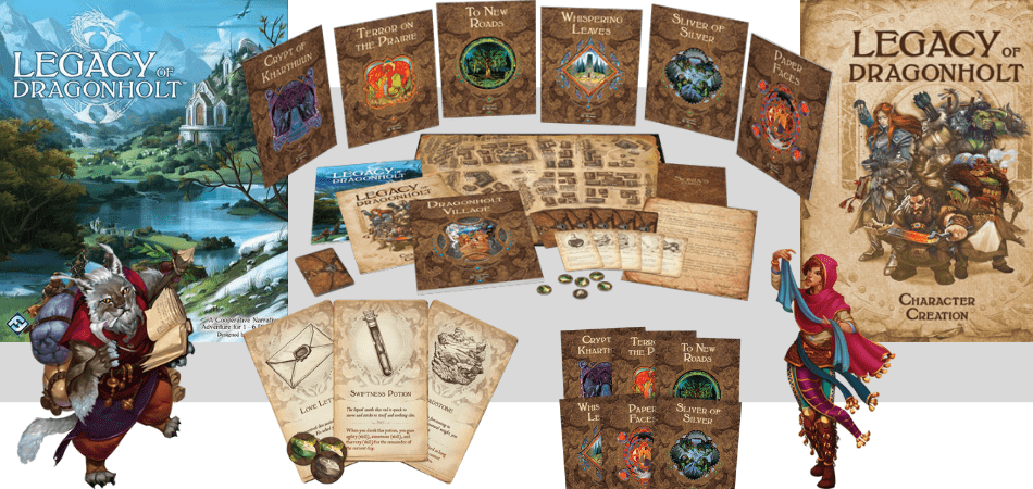 Legacy of Dragonholt — удивительный сборник рассказов, над которым работают игроки. Каждый игрок играет за индивидуального персонажа с различными навыками. В течение одиночной игры игроки будут прорабатывать книгу приключений.