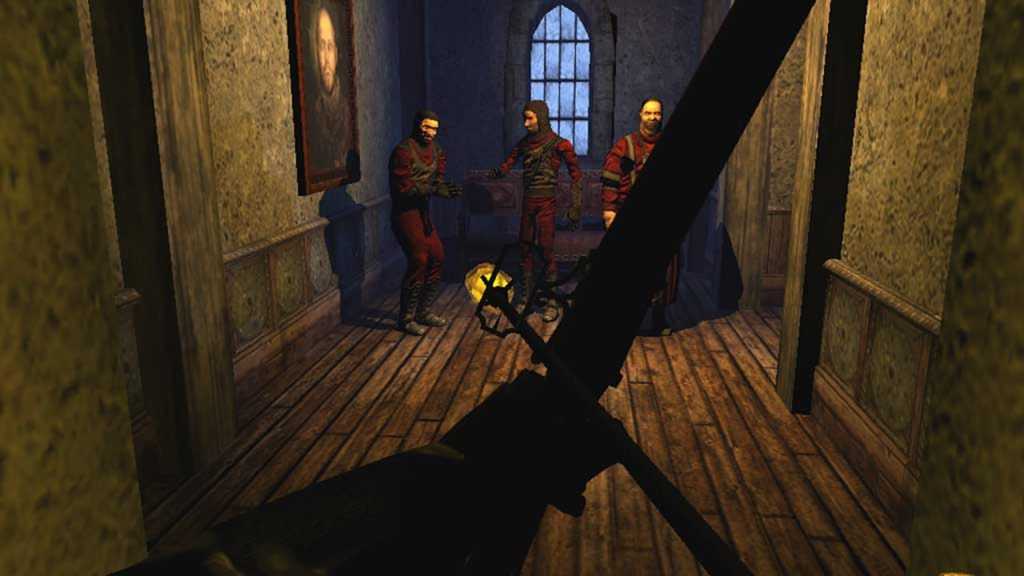 Для ближнего боя можно использовать дубину, но это не лучшая идея. Боец из протагониста откровенно слабый, и если с одним стражником он еще может справиться, то двое уже становятся серьезным испытанием. Впрочем, гемплей и не подразумевает открытой конфронтации: скрытность и незаметность — главное оружие умелого вора.