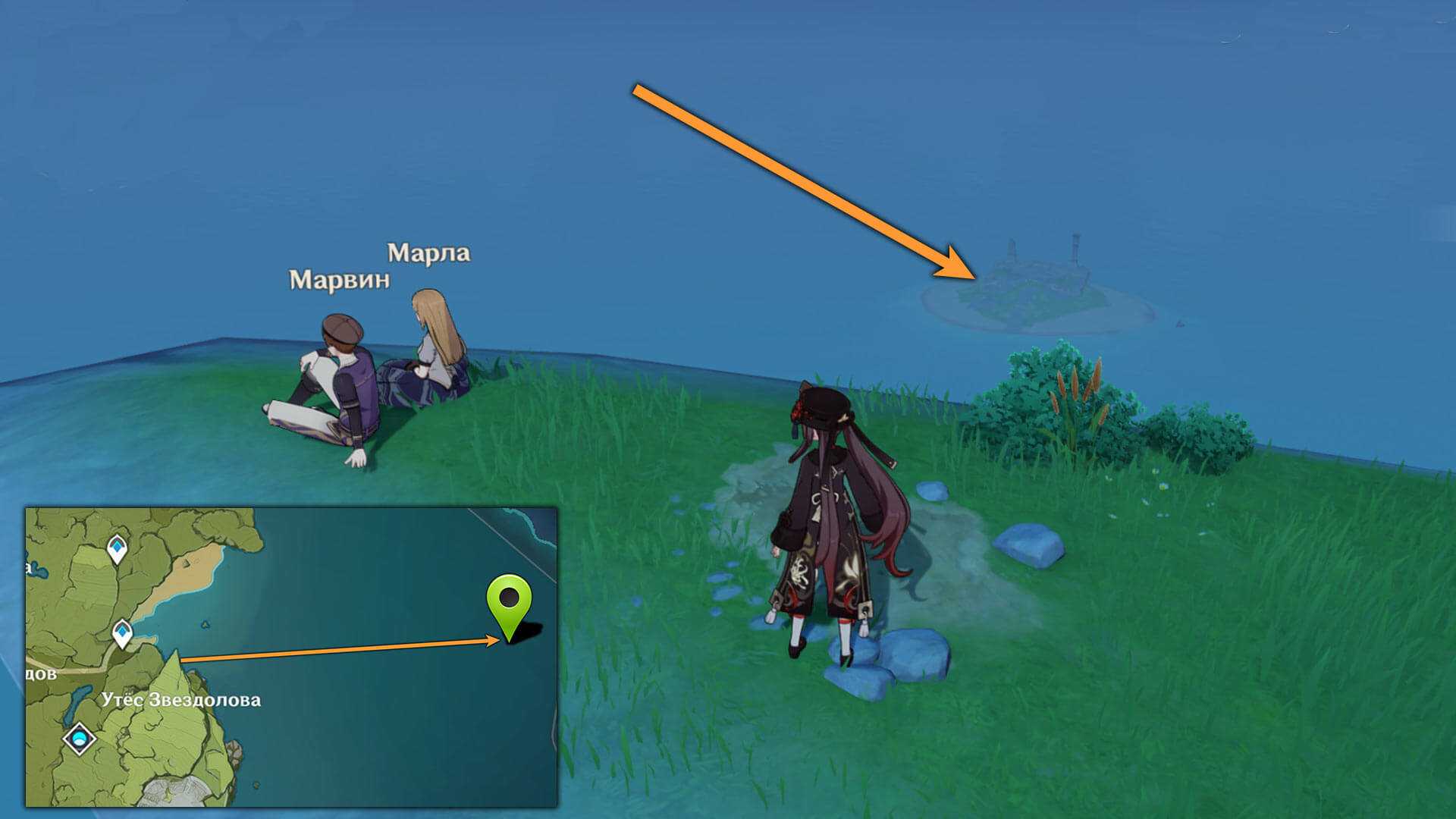 Важно! На острове нужен будет Анемо герой, поэтому если путешественника вы переключили на Гео стихию, а других Анемо персонажей нет, то поставьте ему Анемо стихию, иначе придется добираться до острова второй раз. Первый способ самый быстрый, но потребуется достаточно выносливости