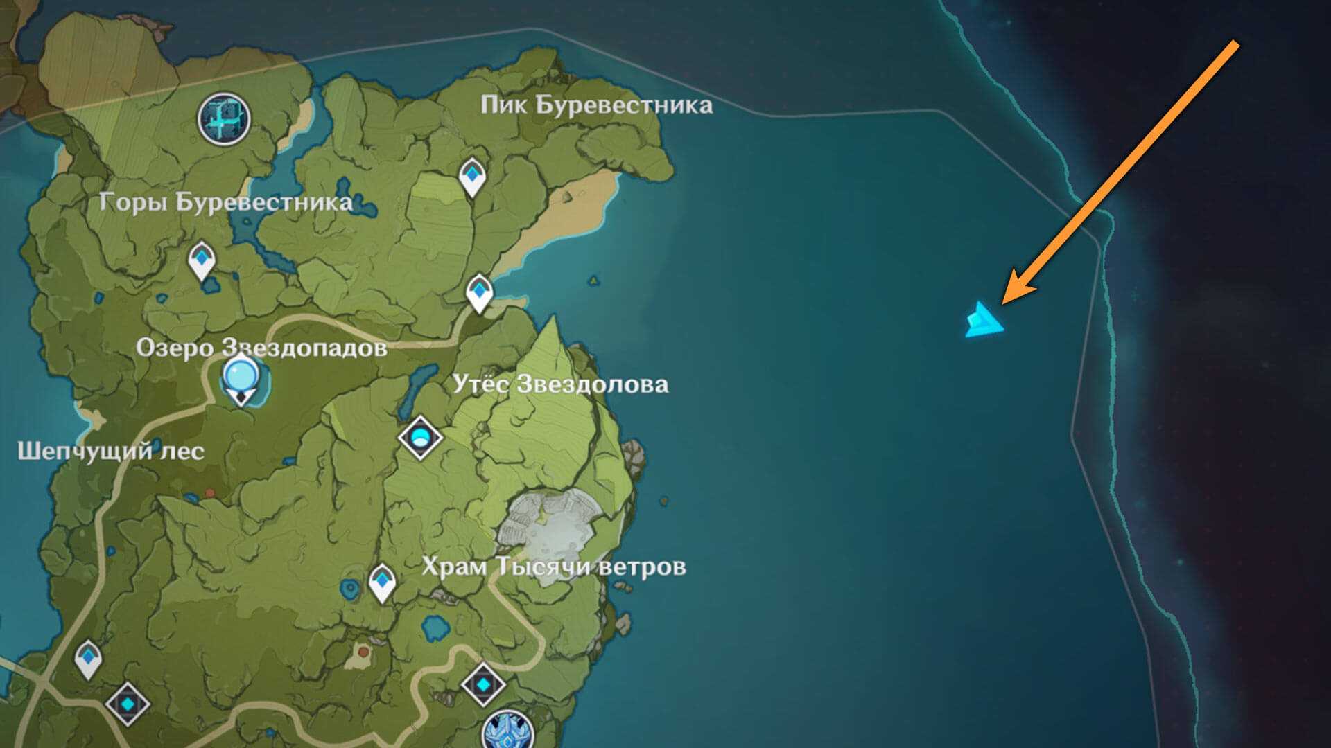 Необитаемый остров находится на востоке от Утеса Звездолова. На карте он никак не отмечен, но его можно увидеть с берега.