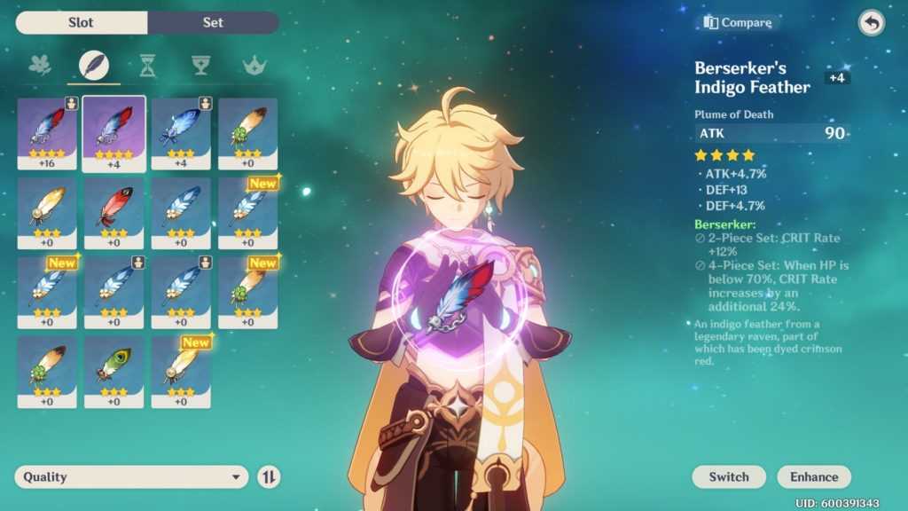Как видите, на 4 уровне не только удвоился показатель Атаки, но появилась дополнительная характеристика Защита в %, что делает Артефакт ещё более полезным. Существует предел того, насколько сильным может стать артефакт в Genshin Impact, и это зависит от того, скольки звёздочным является Артефакт. 2-звёздочный артефакт может быть прокачен только до 4 уровня, а 4-звёздочный артефакт может достичь 16-го уровня.