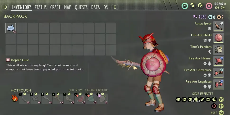 В этом билде используется любое копье, хотя Ржавое копье наносит достаточно большой урон в сочетании с Доспехами огненного муравья и Щитом огненного муравья для дополнительного коррозийного бонуса. В дополнение к этому Кулон Тора дает 10% бонус почти ко всем показателям игрока. Что касается мутаций, то Javellineer обеспечит дополнительный урон от копья, а также Trapper Peep.r, который может обеспечить бонусные критические шансы. Также рекомендуется использовать Meat Shield, поскольку этот билд ориентирован на ближний бой с врагами.