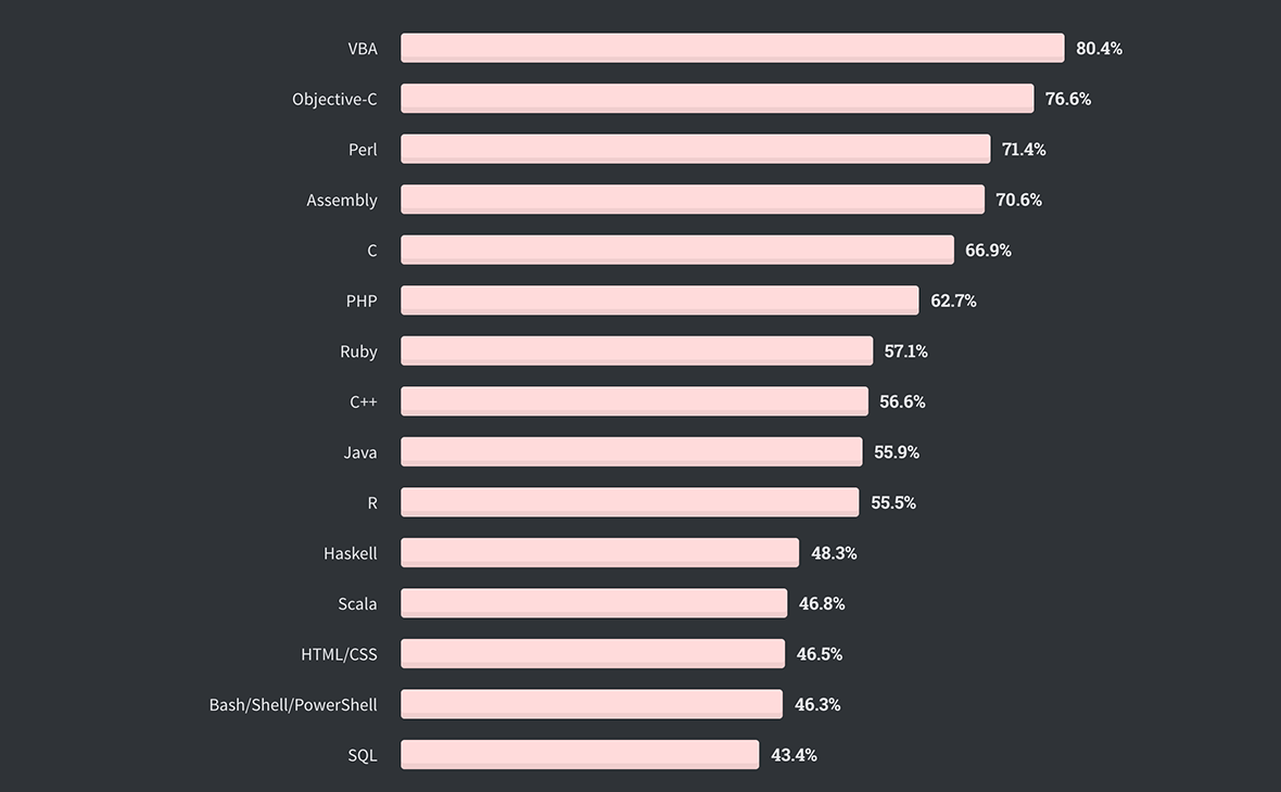 Рейтинг самых «страшных» языков программирования по версии Stack Overflow