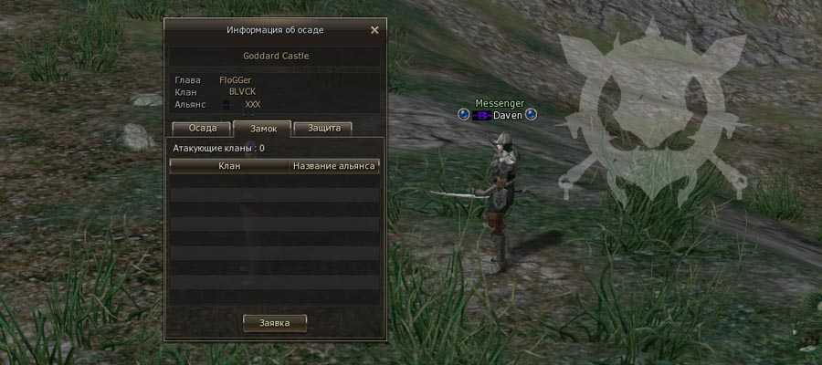 Кланы делятся на атакующих и защищающихся — они враги по умолчанию, в боевой зоне (вокруг замка) вы можете драться даже если с кланом нет состояния войны. При выходе с зоны проведения осады Вы получите флаг. Стоит отметить, что даже кланы состоящие в альянсе могут выступать за разные стороны.