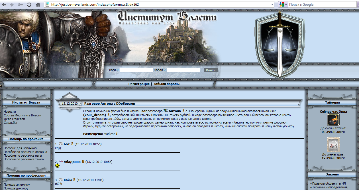 Итак, земли, которых никогда не существовало… Онлайн игра Neverlands ждет своих героев. Ждет с самого создания и до сих пор. А прошло уже долгих шесть лет. Да, именно так. Онлайн гира Neverlands была создана в 2004 году, когда о массовых онлайн играх никто даже не помышлял. Это сейчас интернет пестрит кучей рекламы про новую «революционную» онлайн игру. Но когда начинаешь разбираться подробнее, революция оказывается ничтожным бунтом, который подавили в зародыше. Так что же нужно современному игроку? Уникальность? Однозначно. Красивый интерфейс? Возможно. Красочная обертка? Хм…