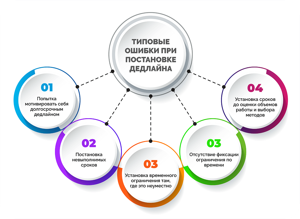 Устанавливать сроки нужно таким образом, чтобы они были выполнимы. Нельзя ставить сложную задачу на день, когда работы минимум на три. Рассмотрим типовые ошибки при постановке крайнего дедлайна: