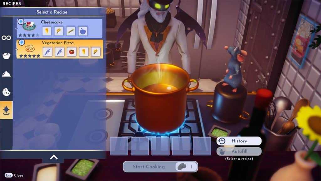 Go to any cooking station (the one inside Remy’s restaurant is recommended), then cook the following dishes: