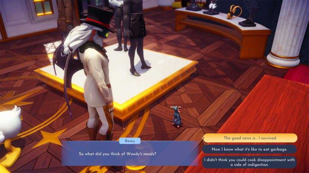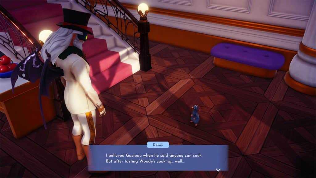 After talking to Woody, head over to Remy to find out how Woody’s cooking went. he will give you the dishes that Woody prepared.