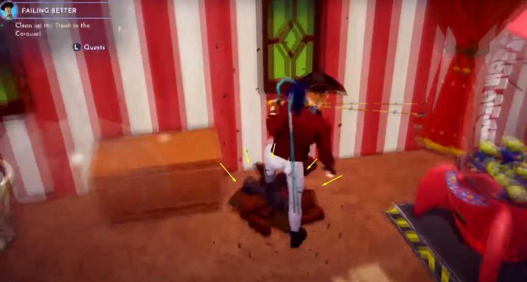 Go inside the Carousel and clean up the seven heaps of trash that are scattered around.