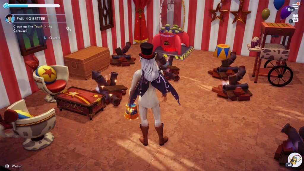 Go back to Woody and talk to him. He’ll then ask you for one more favor and it’s to clean up his Carousel.