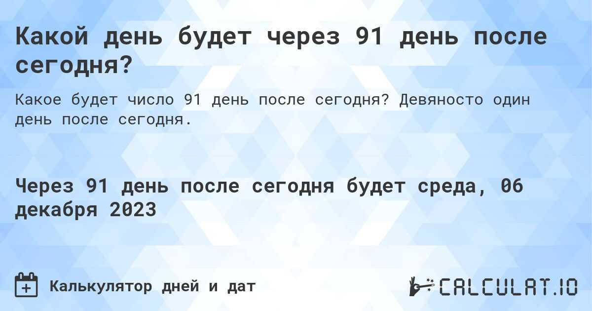 Например, если вы хотите узнать, какая дата будет через 91 день после сегодня, введите ’91’ в поле количества, выберите ‘день’ в качестве периода и выберите ‘после’ в качестве направления отсчета. Калькулятор мгновенно покажет дату, которая будет через 91 день после сегодня.