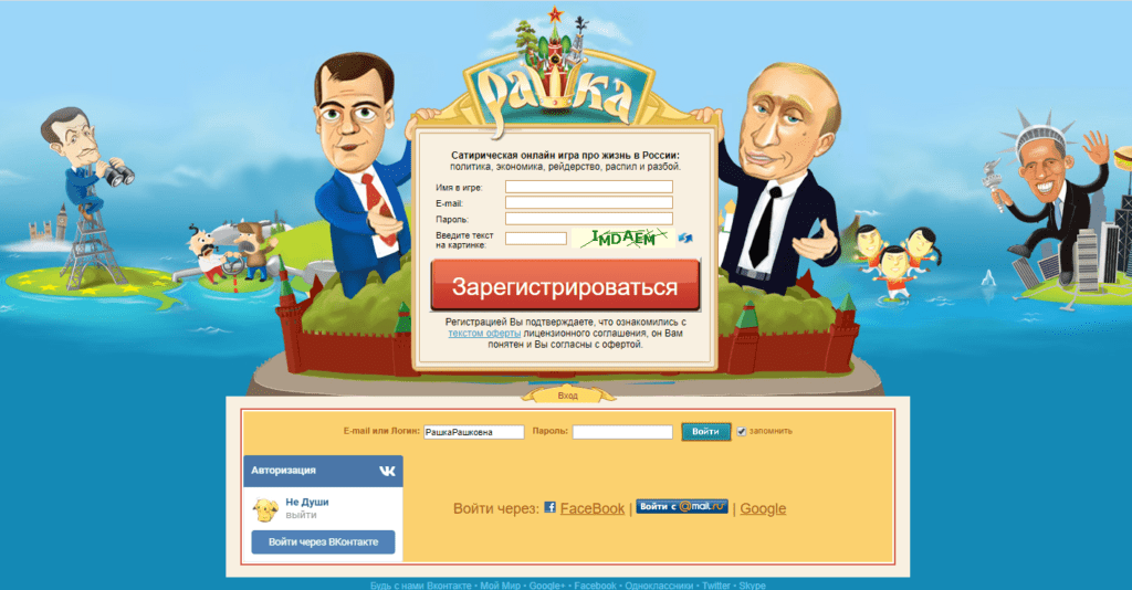 Перед нами регистрационное окно игры. Спасибо за то, что регистрация простая, банковскую карту от нас не требуют и деньги никуда переводить не надо (а то мы знаем, как работает бюрократия, подписал одну бумажку и уже переведен в другой пенсионный фонд).