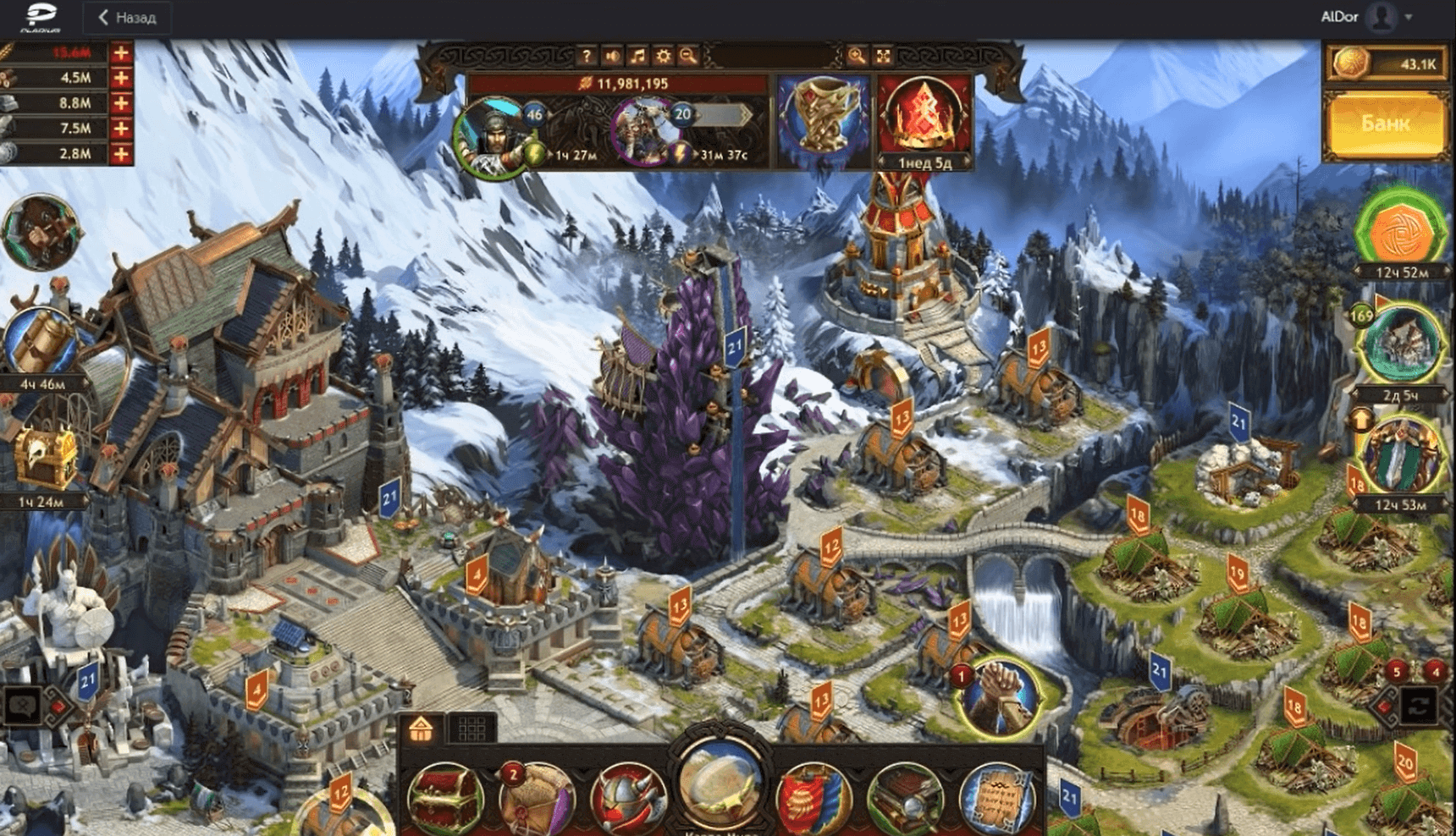 Plarium любят создавать эпическое фэнтези и Stormfall: Rise of Balur — еще один пример неплохой игры. Длинная сюжетная линия, множество юнитов, героев, вариации прокачки города — здесь есть все. Альянсы занимают видное место в геймплее, поскольку именно они принимают участие в борьбе за территории на глобальной карте, а также предоставляют своим членам бонусы.