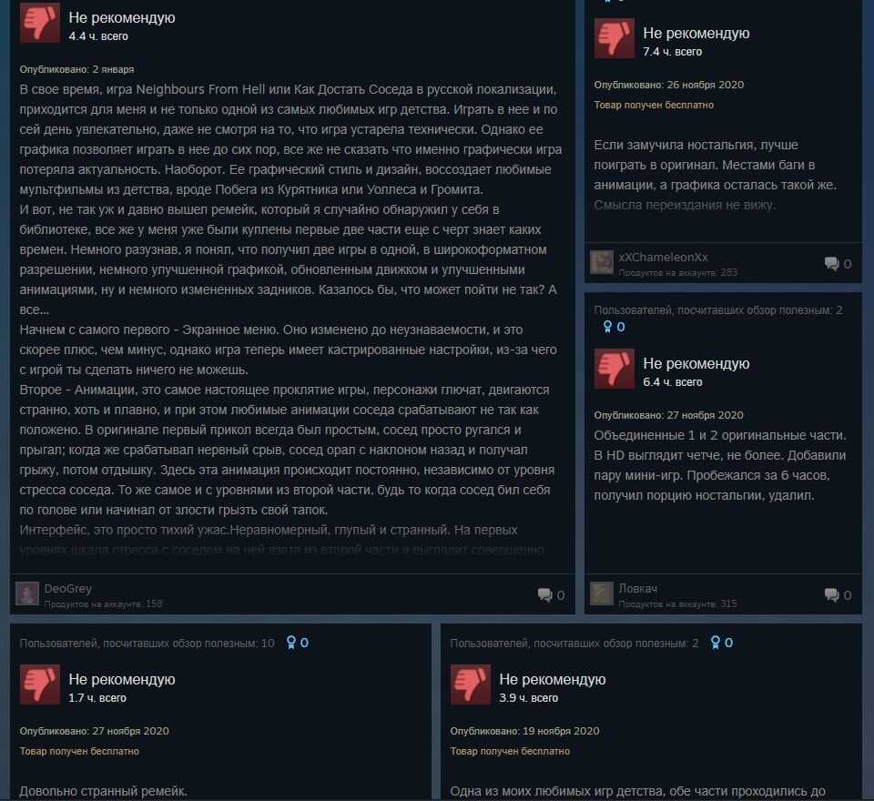 Хотя большинство оценок переиздания в Steam положительные, не все любители оригинала приняли ремастер радостно. Некоторые игроки отмечают, что в новой версии глючат анимации, урезали механику стресса соседа, из-за чего пропал интерес делать цепь из подколов, глючат элементы управления и интерфейс.