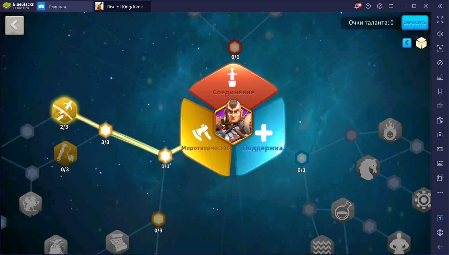 В Rise of Kingdoms каждый командир имеет 3 таланта, обозначенные определенным цветом.