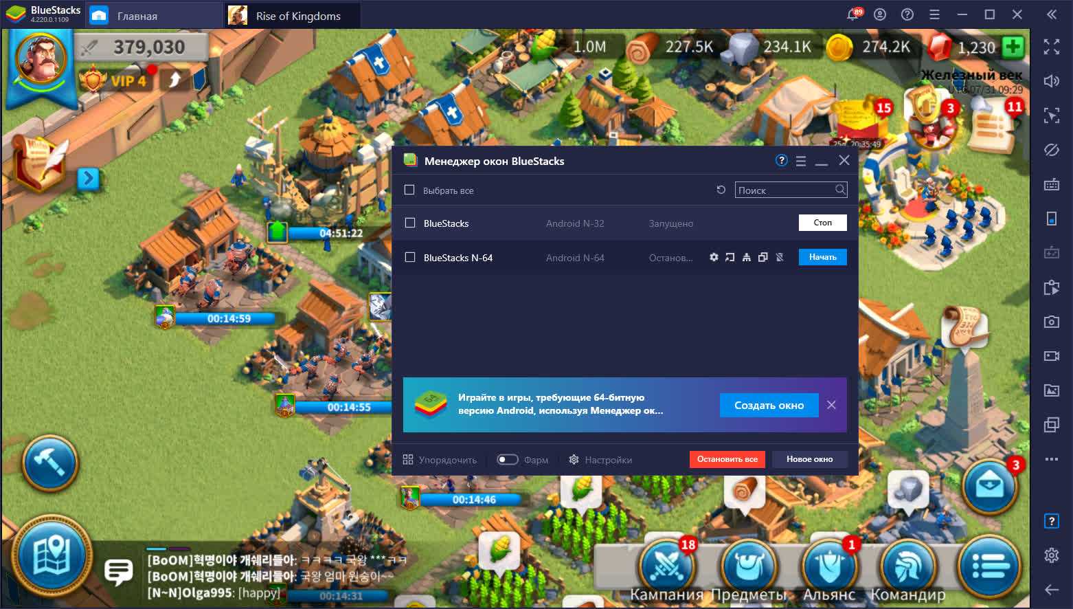 Если одного города-фермы вам мало, то воспользуйтесь режимом мультиоконности BlueStacks. Создайте еще несколько профилей в Rise of Kingdoms и развивайте их одновременно. Это потребует от вас немного больше усилий, но и итоговый результат будет в несколько раз лучше.