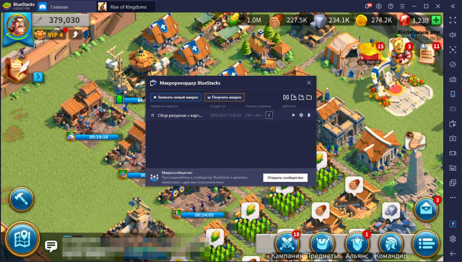 Прохождение обучения и однотипная прокачка поселений на трех или более аккаунтах надоест даже самому усидчивому игроку. Этот процесс может занять до нескольких недель, поскольку каждый город нуждается в ежедневном контроле и выполнении целого ряда обязательных, но повторяющихся задач. Специально для таких случаев в BlueStacks есть функция макросов!