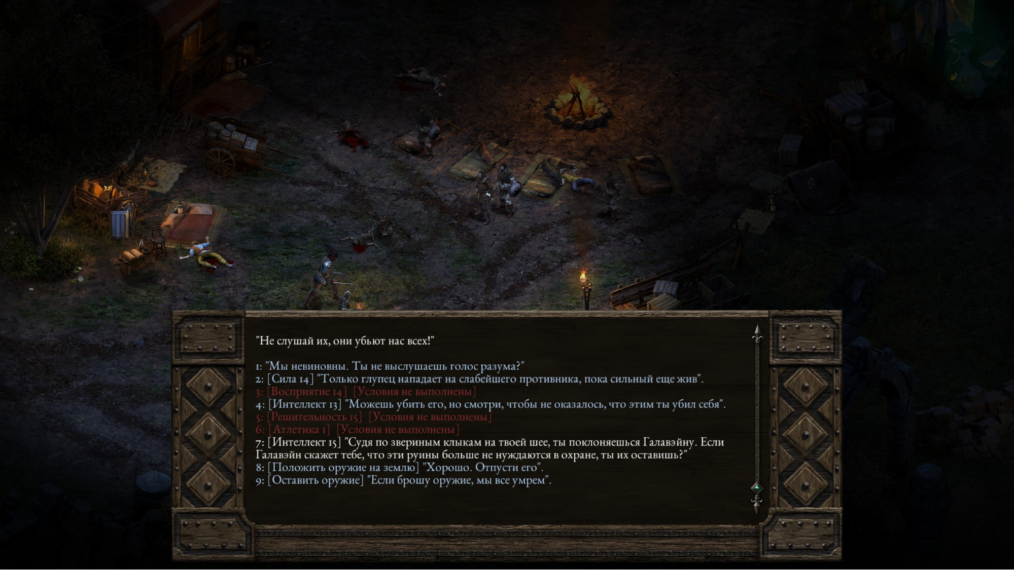 Особенность геймплея — разветвленные системы диалогов, где каждое умение, характеристика или даже прошлое персонажа определяют варианты ответа и исход сцены