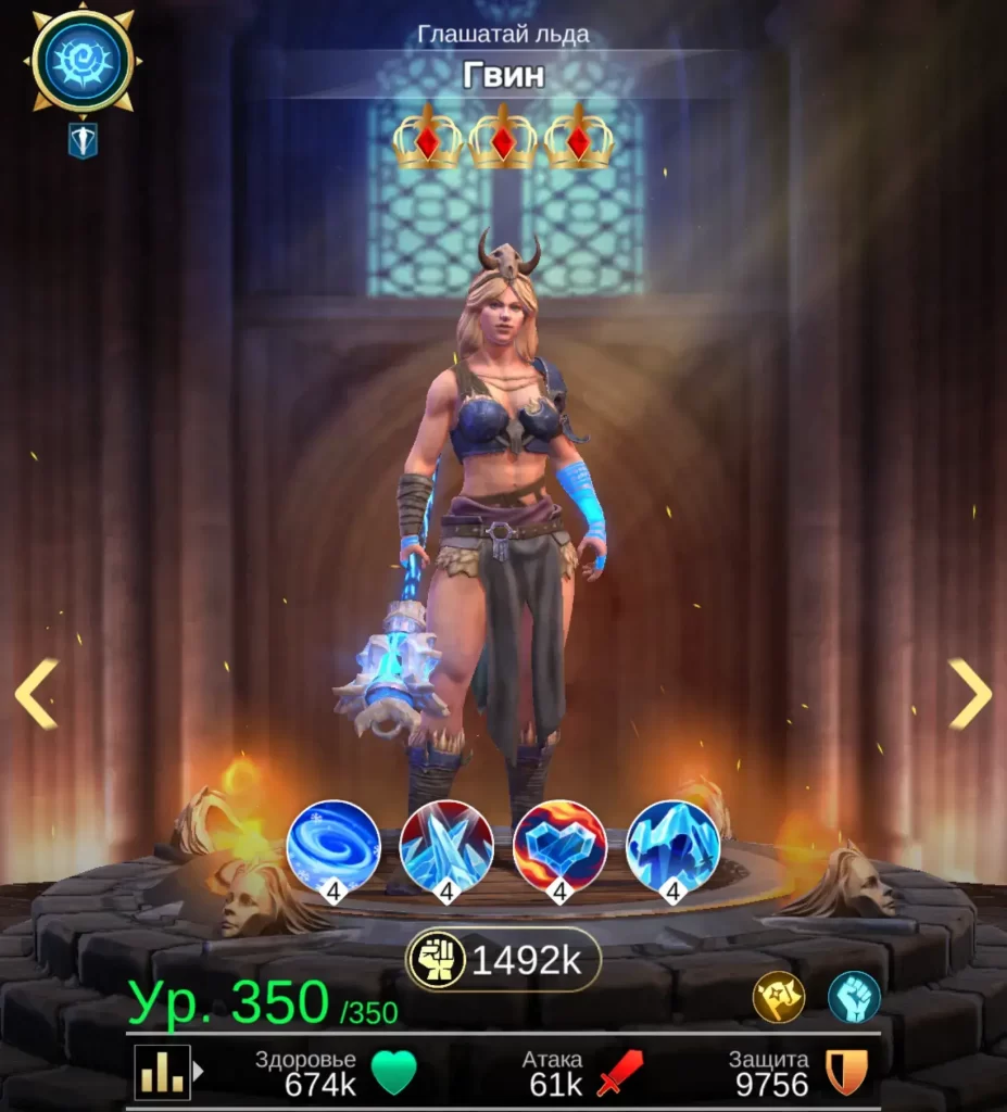 Гвин — важный юнит поддержки. Ее бафы сводятся к замораживанию негодяев и понижению вероятности уклонения. У ребят из команды наоборот, повышается меткость.