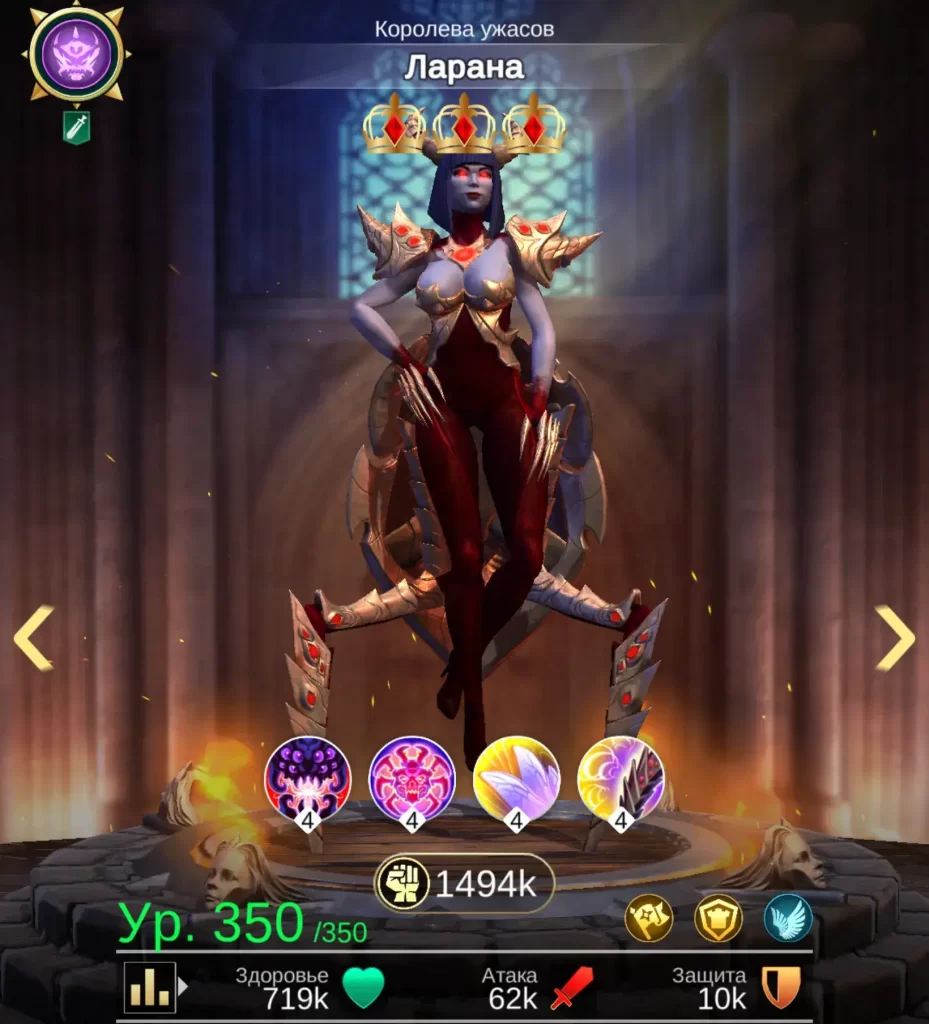 Ларана — неплохой танк, хоть и защиты поменьше чем у Хидэон. Ее особенность заключается в навыках. Она наносит урон второй линии соперника, где обычно размещают аттакеров и хилов. При этом себе восстанавливает здоровье. Также, героиня накладывает иммунитет на себя и союзников к эффектам контроля. Умеет вешать дополнительный уклон, после смерти дружеского персонажа.