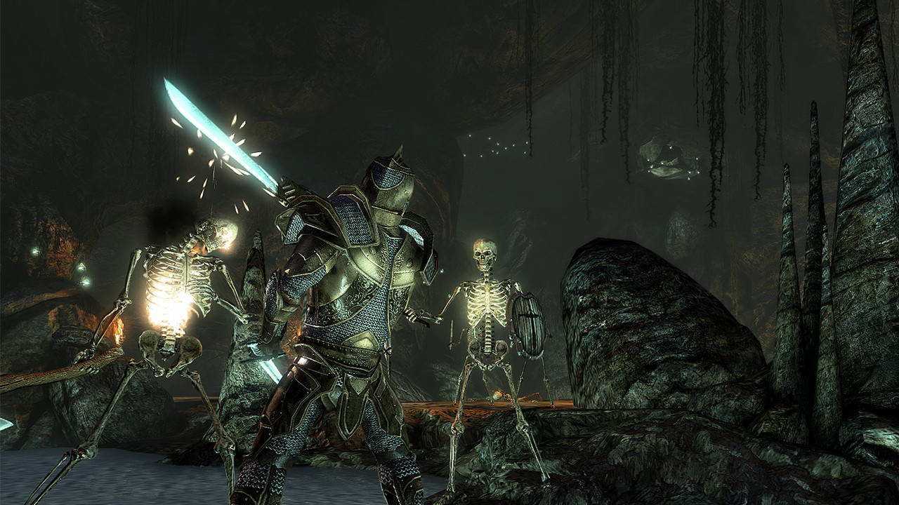 Доступны разные типы брони и оружия. Лучшие экземпляры крафтятся самостоятельно, затем дополнительно усиливаются с помощью зачарования. Логичная система прокачки: навык улучшается только при его использовании. Сюжетная кампания довольно интересная. Также есть множество сайд-квестов, доступных в любом крупном городе.