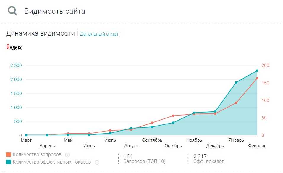 - Видимость сайта (запросы, по которым ресурс занимает позиции, эффективные показы, динамика видимости, рекомендуемые запросы);