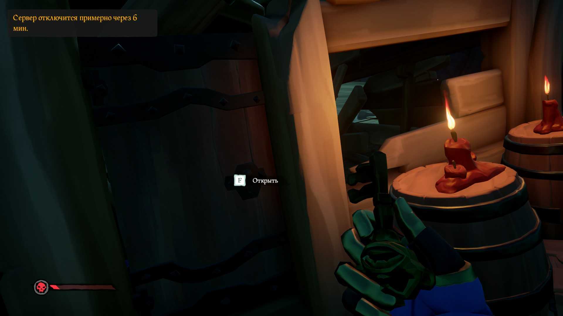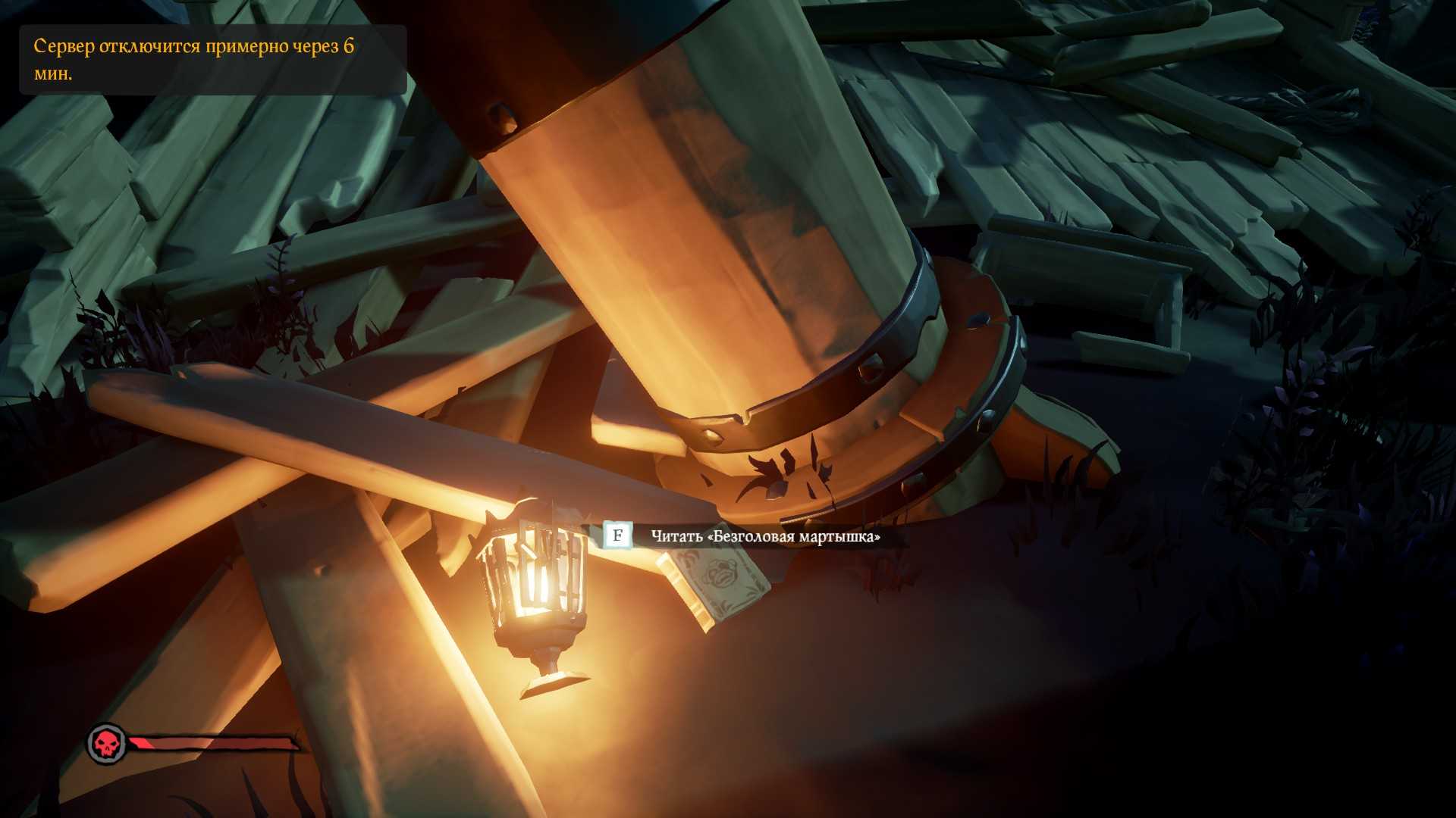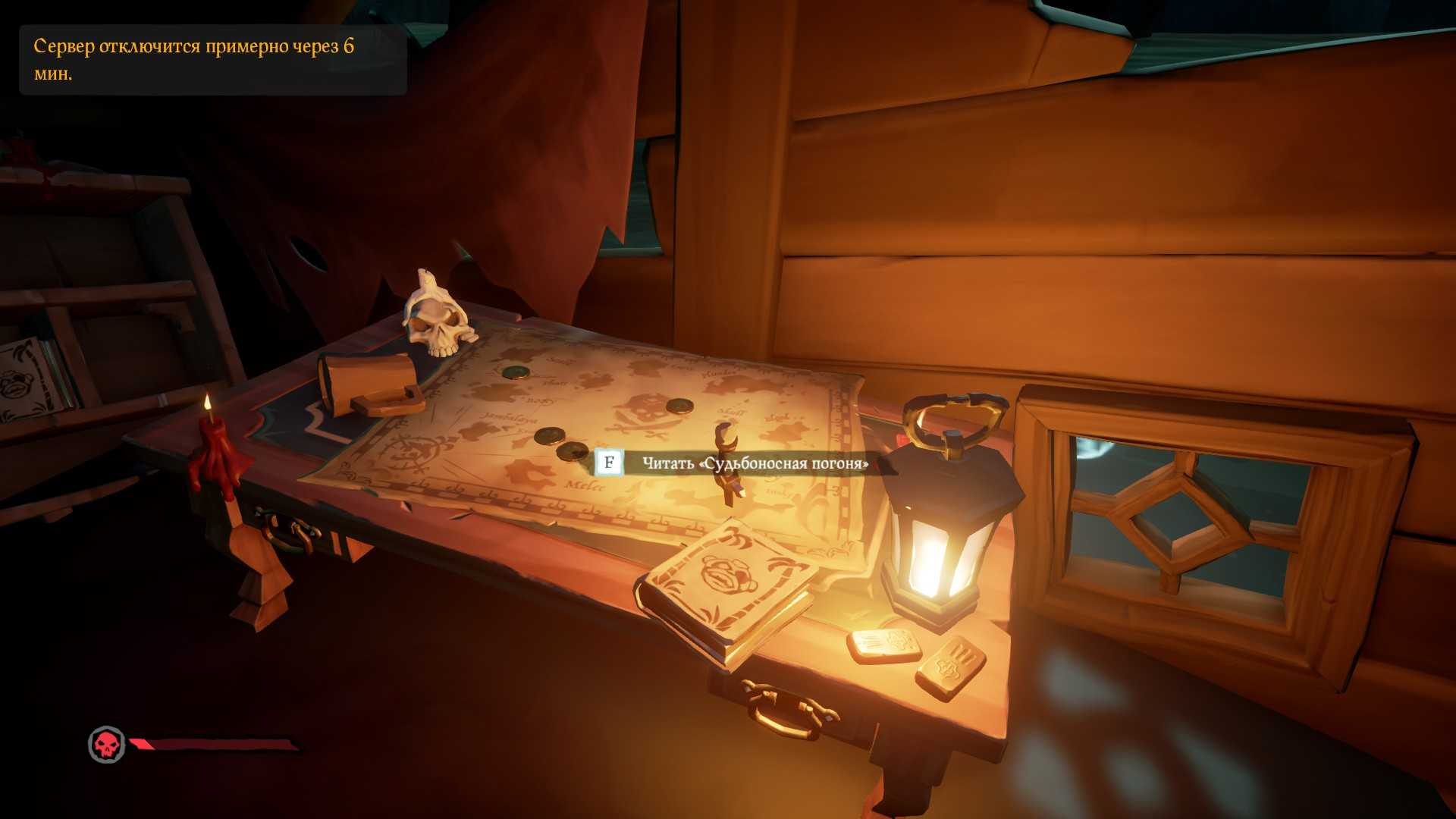На корабле-баре, о котором мы рассказали чуть выше, имеется каюта капитана, в которой можно найти карту и белую свечу. Зажгите свечку фонарем, чтобы появились призраки. Они укажут на определенное место на карте. На ней возникнет красный крестик.