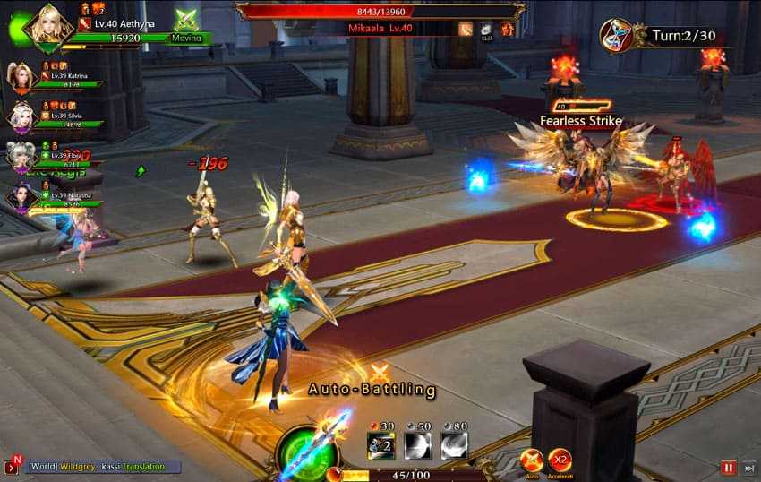 Успех зависит от правильно выбранной цели, раздачи бафов союзникам и выбора дамагерных скилов для врагов. Только с таким подходом вам удастся одолеть врагов гораздо превышающих вас по мощи. Все доступные плюшки и возможности становятся доступными после 85-ого уровня с квестом на захват замка, причём до него можно вкачаться лениво за один день, а до заветного 200-ого будете шагать не один месяц.