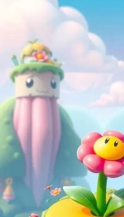 Этот мир расположен в небе и состоит из парящих цветочных платформ. Эффекты Wonder заканчиваются при сборе Wonder Seed или по истечении времени в испытаниях.