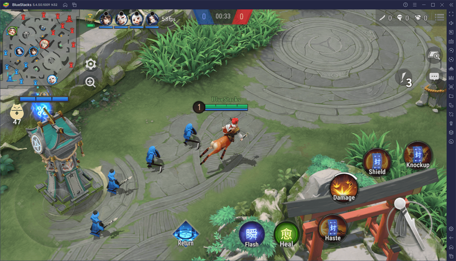 Как только лайн-фаза (первый этап игры, когда все стоят на своих линиях) закончилась, и игроки перемещаются по карте, пытаясь атаковать врагов и уничтожить башню, командных боев становится больше. На верхней линии у вас должен быть более высокий уровень, чем у союзников. И если вы используете самурая или танкового сикигами, то будете намного крепче, чем остальная часть команды.