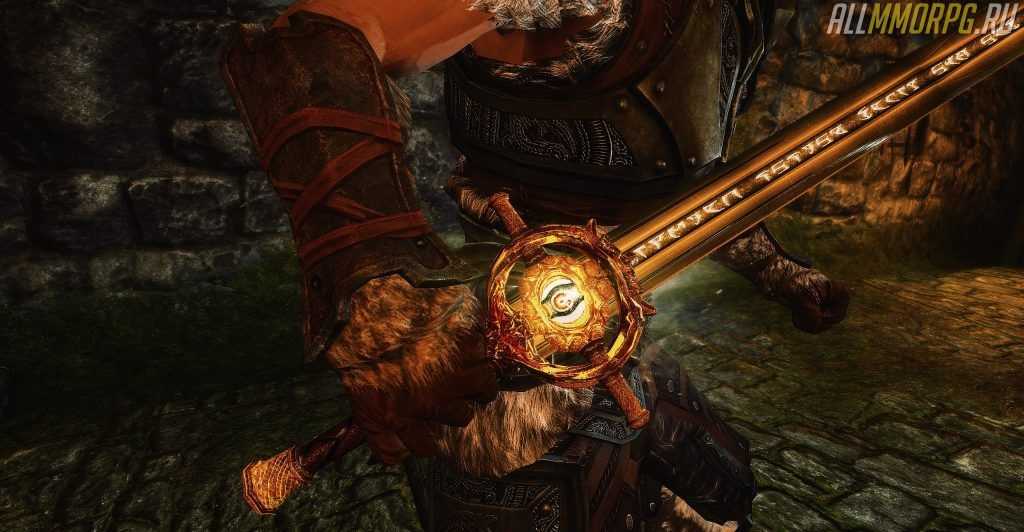 Сияние рассвета – одноручный меч, артефактное оружие, некогда принадлежавшее Принцессе даэдра Меридии. Его особенностью стали чары, поджигающие противника и наносящие ему урон в размере 10-15 ед. если цель – нежить и игрок убил ее с помощью Сияния рассвета, то с шансом труп может взорваться и уничтожить или обратить в бегство других противников класса «Нежить», стоящих вблизи.