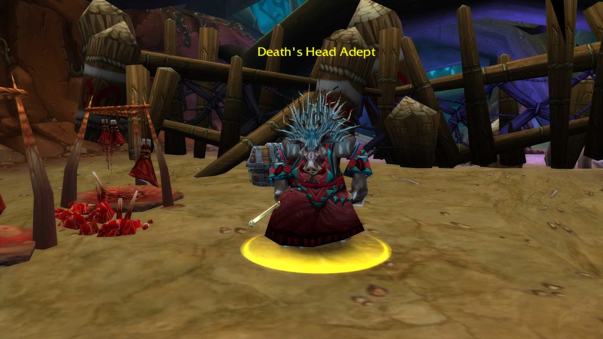 Адепт из племени Мертвой Головы также накладывает способность СС, Ледяные оковы. Подобно тотему, убедитесь что вы тянете только одного из них за раз, и ваша группа должна находиться вдали от любых дополнительных мобов или патрулей. Поскольку они являются заклинателями, Главных Адептов Смерти легко убить, но они могут быть опасными, если застигнут вас врасплох.